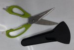 Ножницы предназначены для выполнения различных кухонных работ: нарезки свежей зелени, разделки рыбы и птицы (срезание плавников, разрезание тушки цыпленка на порционные части), а также вскрытия прочных картонных и полимерных упаковок.