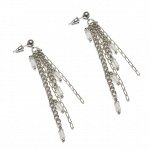 Стильные серьги подвески, украшенные декоративными элементами из металла и французского полимера. Длина серёг 5,5 см. Вся металлическая фурнитура выполнена под цвет серебра гипоаллергенна и соответствует нормам ЕС.