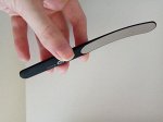 На поверхности данной пилки для ногтей расположены П-образные зубцы, размер которых не превышает 0.2-0.5 мм, в то время как их высота равняется примерно 0.1 мм. Из-за оптимального подбора размеров зубцов поверхность пилочки для полировки кажется достаточно гладкой – именно она принимает участие в полировке ногтевой пластины.