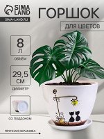 Цвет: зелёный, цвет: белый, форма: круглая, диаметр, см: 23, высота, см: 21, вид установки: напольное, рисунок: да, материал: керамика, форма фигуры: предметы интерьера.