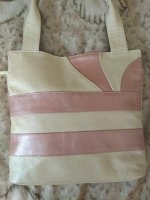 30*31*8 высота ручки 26см / Сумка из натуральной кожи, цвет бледно-желтый, розовый, 1 отдел закрывается на молнию, внутри карман на молнии и карман для телефона. На задней стенке удобный карман на молнии. Цвет фурнитуры "серебро". Сумка держит форму в наполненном состоянии.
