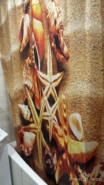 Фото на шторе очень яркое, расположено вертикально. Коврик мягкий, приятный на ощупь. В целом комплект хороший