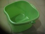 Ванночка для ног удобная, представляет собой широкое ведерко обьемом 18,7 л, на дне имеются выемки для стоп длинной 28 см с гладкими пупырышками на дне. Внутри метки уровня воды в литрах
