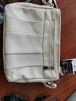 24*19*6 регулируемая по длине ручка / Сумка из натуральной кожи, цвет молочный, 1 отдел закрывается на молнию,внутри карман на молнии и карман для телефона. / На задней стенке и передней стенке есть по одному карману на молнии. / Цвет фурнитуры "серебро" / Сумка держит форму в наполненном состоянии. / /
