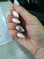 Красивая жемчужная втирка, на белый лак смотрелась белоснежно, как на типсах (см. фото). Но после нанесения топа появился желтоватый оттенок.... В цЕщёКрасивая жемчужная втирка, на белый лак смотрелась белоснежно, как на типсах (см. фото). Но после нанесения топа появился желтоватый оттенок.... В целом при дневном свете смотрится беленький, блестит-переливается. Забабахала на ноги втирку тоже, на фото промежуточный результат)↑