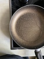 Сковородка пришла немного погнутая, но возвращать уже не было времени, поправили рукой (материал как тонкий алюминий). Легкая, тонкая, и кажется, чтЕщёСковородка пришла немного погнутая, но возвращать уже не было времени, поправили рукой (материал как тонкий алюминий). Легкая, тонкая, и кажется, что дно тоже не очень плотно прилегает к конфорке. В быту посмотрим↑