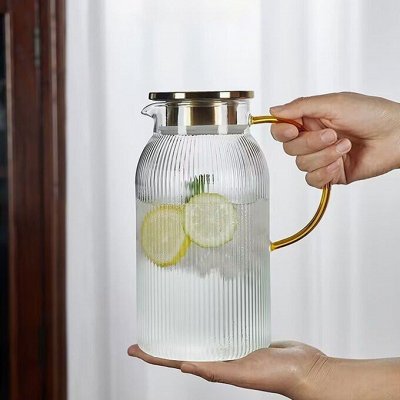 🟡В этом чайнике мы настаиваем воду с лимоном, апельсином и мятой - не только вкусно и полезно (чайник из стекла), но еще и сразу летнее настроение на кухне. Достаточно большой - почти 2 литра.