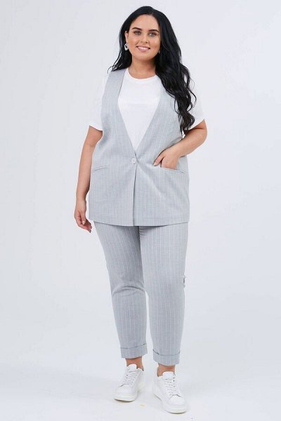 🟢V-образные вырезы и вертикальные детали (стрелки на брюках, однобортные жакеты) вытягивают силуэт.
