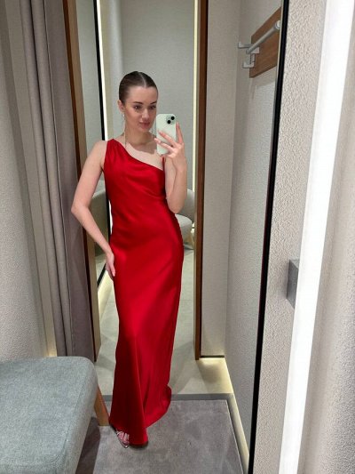 Образ 4 - Асимметричное платье макси в рубиновом цвете ❤️