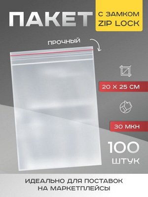 Размер: 0,1 x 20 x 25. Цена за упаковку из 100 шт. Прочные, плотные пакеты с замком Zip Lock это надежная и недорогая упаковка для любых товаров, осо…