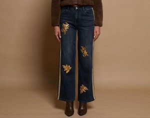 ОПИСАНИЕДжинсы с завышенной талией и широкими штанинами выполнены из денима средней плотности на основе 100% хлопка. Модель хорошо держит форму и про…